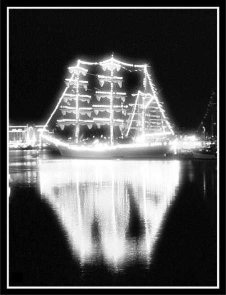 Уже несколько десятков лет из книги в книгу передается эта знаменитая фотография, якобы сделанная через светофильтр в тот самый момент, когда эсминец «Элдридж» исчез из виду. Не вдаваясь в суть самого акта внепространственной телепортации, заметим, что исчезновение тысячетонной массы с поверхности жидкости (вспоминаем закон Архимеда!) вызвало бы такую реакцию с водоворотами, что их обязательно зафиксировал бы неизвестный фотограф. Если же считать, что эсминец «раздвоился» и его призрачный образ остался на месте эксперимента, то тогда в воде присутствовала бы глубокая выемка, чего тоже нет на снимке.