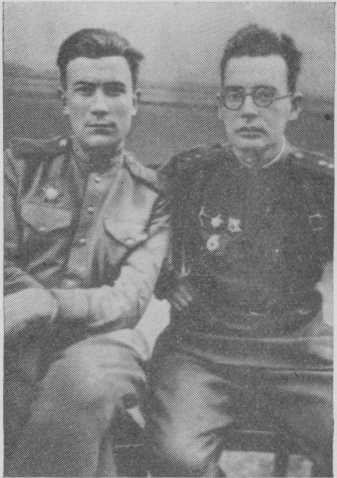 Начальник дивизионной разведки, капитан Э. Казакевич с другом–разведчиком