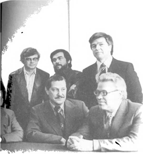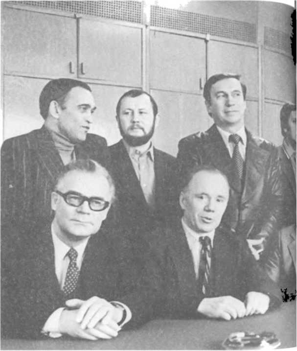 Ленинградская студия телевидения. На съемках передачи о «Тихом Доне» М.А. Шолохова (цикл «Классика и современность». Автор цикла М.Н. Любомудров) 16 февраля 1982 г. Слева направо: А.И. Хватов, М.Н. Любомудров, С.Н. Семанов, П.П. Глебов.