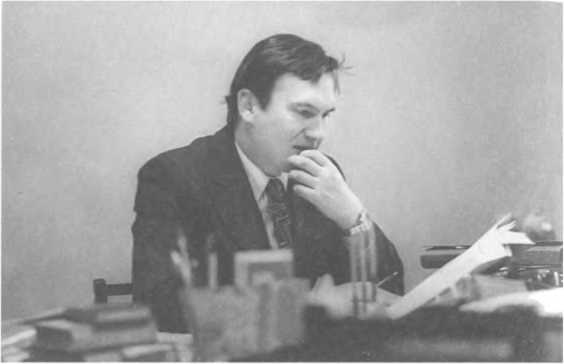 С.Н. Семанов, главный редактор журнала «Человек и закон», в рабочем кабинете.