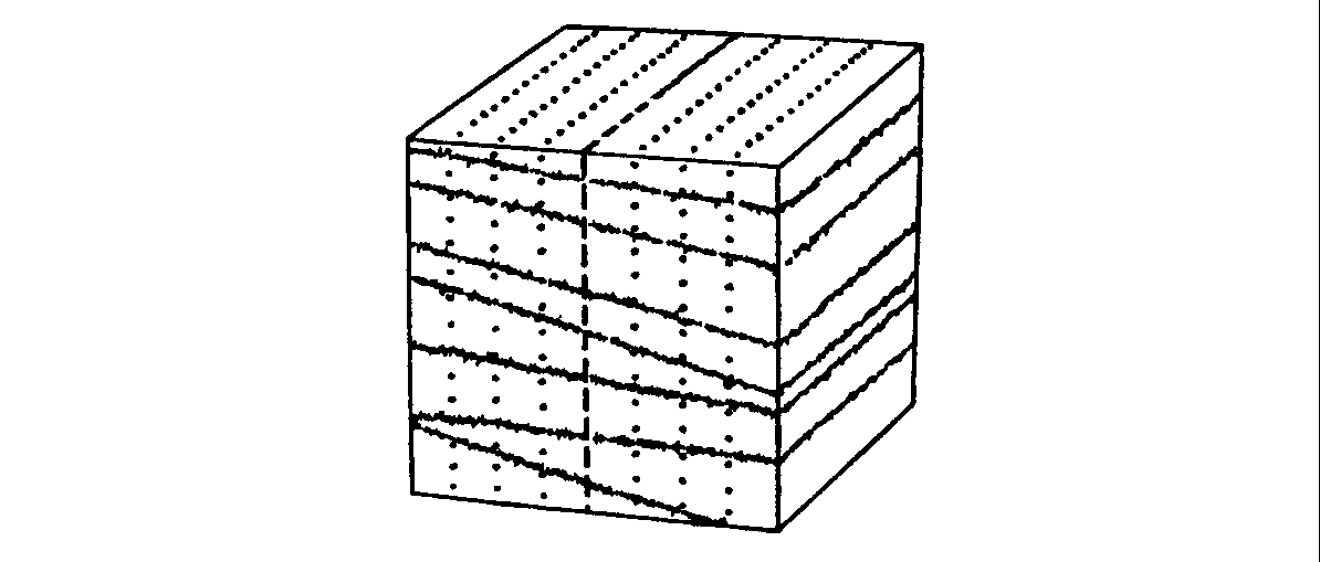 Впоследствии, когда появилась техническая возможность перенести исследования в глубь блока, та группа специалистов, которая применяла детекторы пунктирных линий, и та группа, в чьем распоряжении были детекторы точечных линий, сошлись во мнении, что рассматриваемая структура состоит из восьми идентичных вертикальных пластин. Однако специалисты, работающие с детектором наклонно-штриховых линий, продолжали настаивать на том, что блок состоит из восьми не равных между собой и почти горизонтально расположенных пластин.