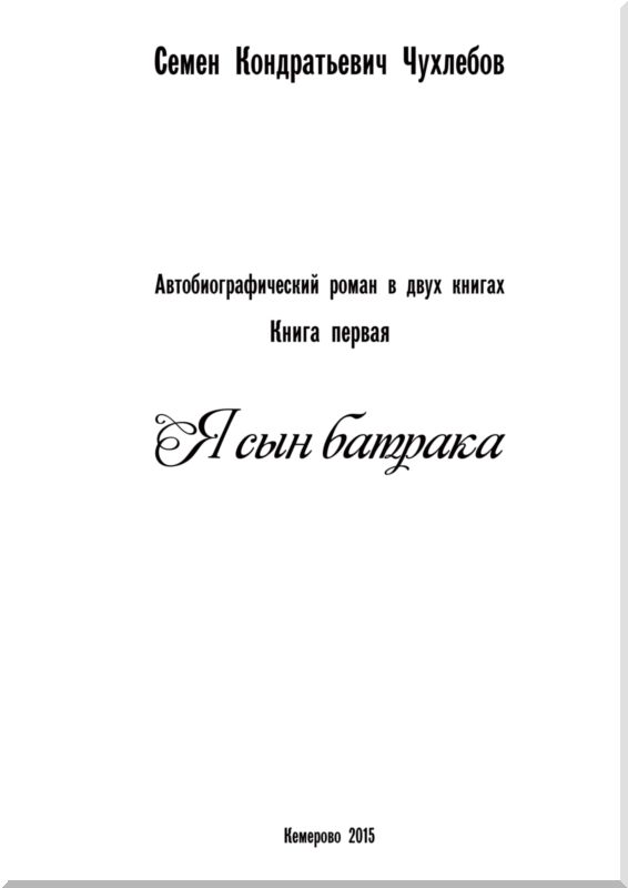 Семен Кондратьевич Чухлебов Я СЫН БАТРАКА Автобиографический роман в двух книгах Книга первая