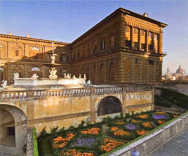 Ренессансный Палаццо Питти, самый большой музейный комплекс во Флоренции, вид со стороны садов Боболи