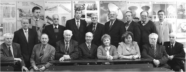 185. 2007 г. Кафедра «Стартовые и технические комплексы ракет и космических аппаратов» (А4). Сидят слева направо: А.Г. Корнев, Ю.А. Круглов (зав. кафедрой), А.Ф. Уткин, Б.А. Храмов, Р.Я. Гаевская, А.Е. Леккина, Б.Ф. Щербаков, Л.С. Лелин; стоят: И.Н. Молчанов, С.В. Гагарский, И.Л. Добросердов, Е.В. Афанасьев, В.П. Зюзликов, С.В. Бобышев, С.М. Дудин, В.Б. Синильщиков, А.И. Жеребин.
