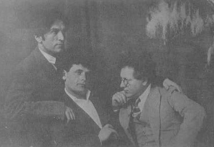 Перец Маркиш (в середине) с еврейскими писателями: слева — Мойше Бродерзон, Алтер Кацизна. Варшава, 1925 г.