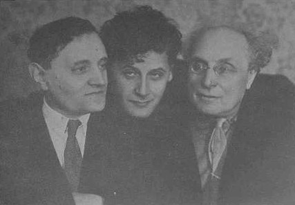 Перец Маркиш (в середине). Слева Михаил Мильнер, справа Иехескель Добрушин. Москва, 1937 г.