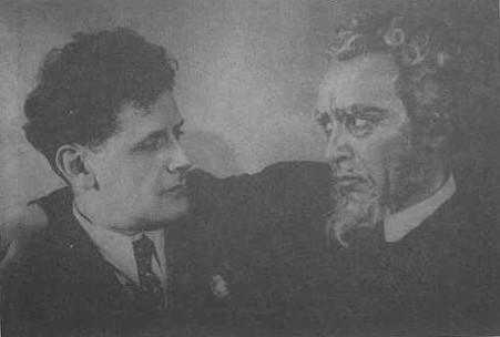 Перец Маркиш и Моисей Гольдблат в роли Арье-Летописца на премьере пьесы Переца Маркиша «Калнидрэ». Киев, апрель 1941 г.
