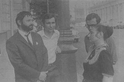 Эстер и Давид Маркиш. Демонстрация с желтыми звездами. На заднем плане — Александр Кримгольд и Виктор Яхот. Москва, 12 августа 1972 г.
