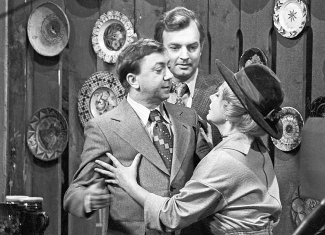 Как мы репетировали? Помнится, каждый выпуск — по месяцу-полтора. Когда начинали, электронного-то монтажа не было. Работали по секундомеру, тютелька в тютельку. К тому же запись должна была заканчиваться незадолго до начала вечернего спектакля в театре. Цейтнот создавал и нервозные, и комические ситуации, когда мы лихорадочно украдкой поглядывали на часы, а Зелинский, выглядывая из-за камеры, со страшным выражением лица зловещим шепотом призывал: «Веселей, еще веселей!..»