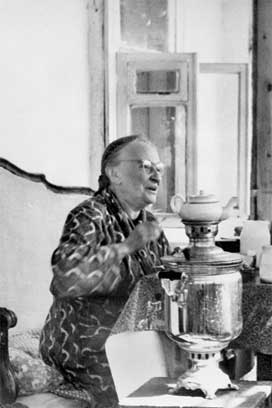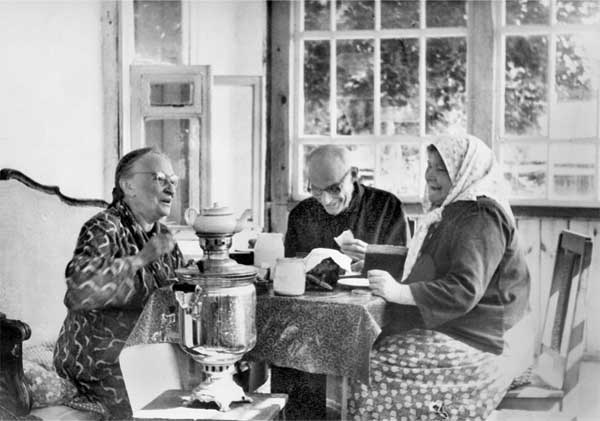 Н. Я. Мандельштам, ее брат Е. Я. Хазин и П. Ф. Стёпина («тетя Поля»). Таруса, 60-е годы