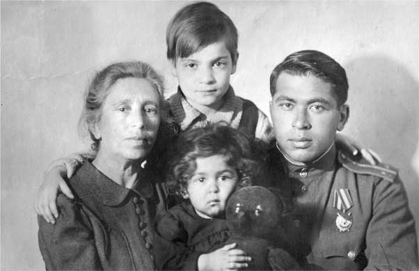 Брат Ф.А. И. А. Вигдоров дома на побывке. Слева – мать Ф.А. и И.А. С. Б. Вигдорова, сверху – Галя, снизу – Саша. 1944 г.