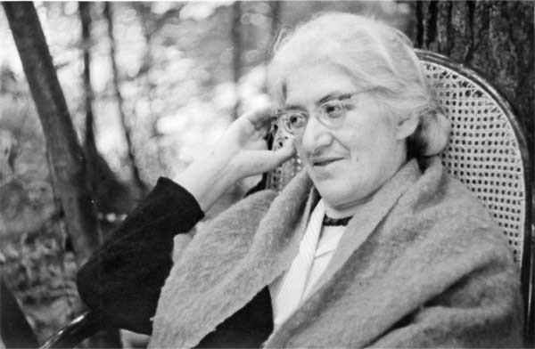 Вскоре после этого моего разговора [с Оттенами] Фрида приехала в Тарусу, и взглянув на нее, я поняла, что в информации Оттенов есть какая-то реальность. Она была седой девочкой в широкой только ей свойственной сборчатой юбке, которая придавала ей какую-то семилетнюю солидность. Стриженая седая голова казалась совсем молодой, почти ребяческой, немножко озорной даже, как у девочки с мальчишескими повадками. И это впечатление усиливалось ее пристальными, серьезными, пытливыми глазами. Она всегда и на всё пристально глядела отличными коричневыми, до конфуза круглыми и серьезными бляхами, в которых не было ни удивления, ни любопытства, а только сосредоточенное и постоянное внимание. Вероятно, это внимание одно из редкостных свойств Фриды.