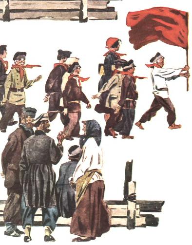 Тринадцатилетний Павел, русоволосый, худощавый, с большими карими глазами, сидел за столом, положив подбородок на ладони. Рядом с ним – восьмилетний брат Федя. Он преданно любит старшего брата, во всём старается подражать ему: ведь Пашка уже пионер! Вот и сейчас он смотрит выжидательно на Пашку, широко открыв такие же, как у него, карие глаза. Павел молчит, обдумывая, что ответить.