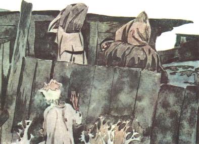 Он открыл мешок, поднял на деда глаза и отшатнулся: серое лицо старика было искажено ненавистью.
