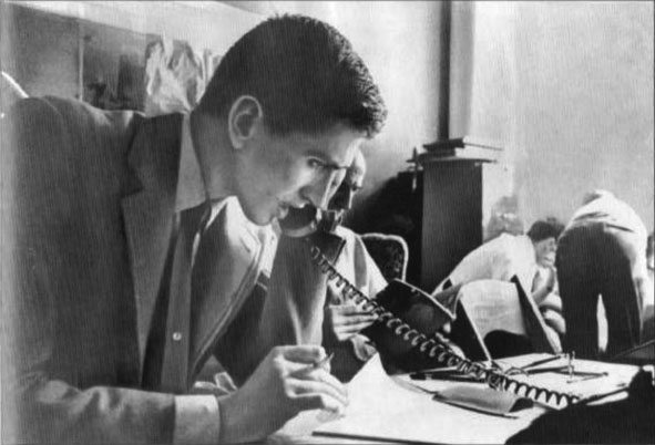 После запрета на поездку в Гавану в 1965 году, Бобби сидел в закрытой комнате маршалловского шахматного клуба в Нью-Йорке и играл с соперниками по телетайпу. Обыграв Василия Смыслова, он анализирует с ним партию по телефону.