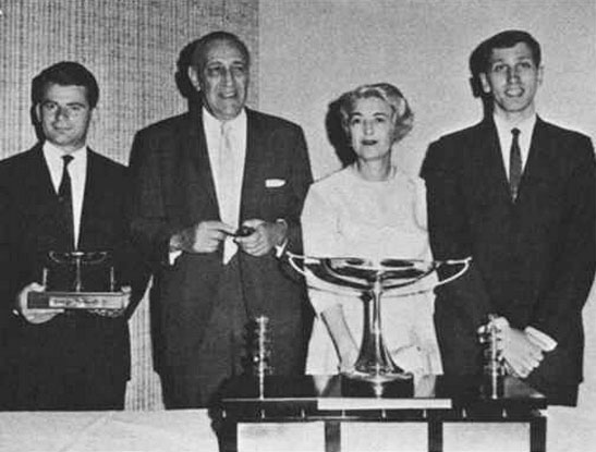 Борис Спасский, Грегор и Жаклин Пятигорские, Бобби Фишер (Санта-Моника, 1966 год).