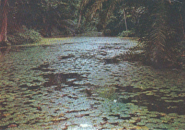 Заросшее кувшинкой озеро в тропическом лесу Национального парка Банко близ Абиджана