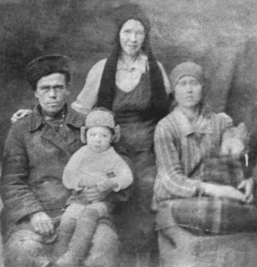 Валя и его сестрёнка Ага с отцом, матерью и тётей Татьяной. Около 1940 г.