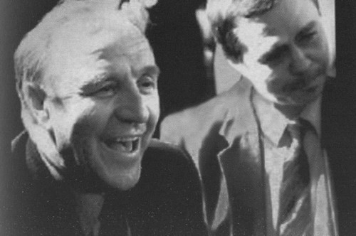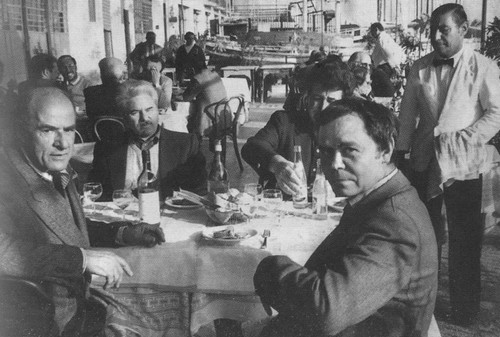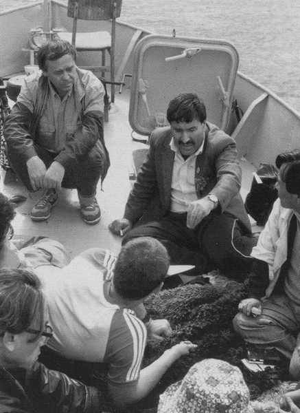 Валентин Распутин и журналист «Литературной газеты» Зорий Балаян беседуют с японской киногруппой. Байкал. 1987 г.