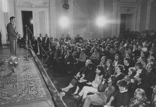 Во Франции: поэт Андрей Румянцев, автор книги (слева), Валентин Распутин и руководитель Общества дружбы двух стран Марк Дрюэн в сопровождении переводчицы. Департамент Верхняя Савойя. 1999 г.