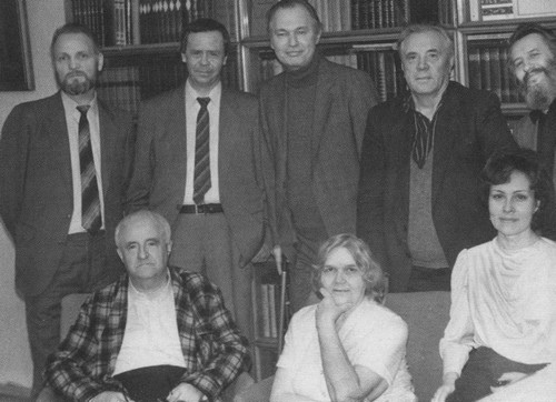 В гостях у Георгия Васильевича и Эльзы Густавовны Свиридовых. Сидят: чета Свиридовых и Надежда Крупина; стоят: писатели Владимир Крупин, Валентин Распутин, Валерий Ганичев, Виктор Астафьев и художник Юрий Селиверстов