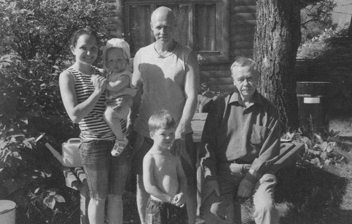 На даче с сыном Сергеем и его семейством — женой Еленой и детьми Гришей и Любой