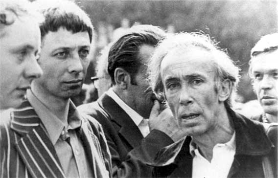 Олег Даль и Валентин Никулин на похоронах Владимира Высоцкого