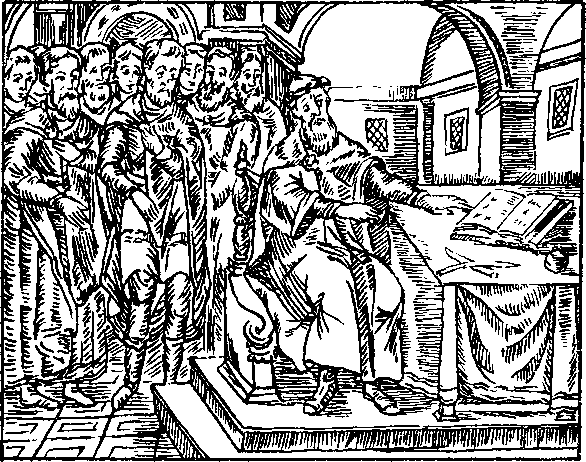 Он снова и снова перелистывал книги мыслителей прошлого, вникал в них, находил укрепление своим думам и радостно, удовлетворенный, вписывал их слова в свое «Поучение». Старательно перенес Мономах на свой пергамент слова Василия Великого, обращенные к отрокам: «Еде и питью быти без шумя великого, при старых молчать, премудрых слушать, старшим покоряться, с равными и младшими любовь иметь, без лукавства беседуя, а побольше разуметь; не свирепствовать словом, не хулить в беседе; не многое смеяться, стыдиться старших, с непутевыми женщинами не беседовать и избегать их, глаза держа книзу, а душу ввысь, не уклоняться учить увлекающихся властью, ни во что ставить всеобщий почет».