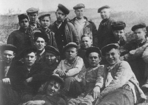 Шукшин-школьник (стоит третий слева) среди односельчан в Сростках. «…вспоминаю то время с хорошим чувством. Хотел бы туда вернуться, да нельзя…»