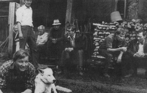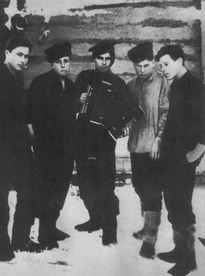 Шукшин (крайний слева) со сверстниками в Сростках. «Когда его исключили, жил дома. Какие-то месяцы мы провели с ним вместе. И вдруг он — для нас, всех ребят, это было совершенно неожиданно — уехал из дома»