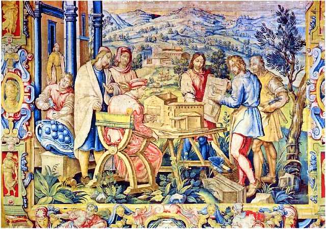 Козимо Старший рассматривает макет перестройки монастыря Бадия-Фьезолана. Бенедетто ди Микеле Скилли, аррас 60-х годов XVI в., Палаццо Медичи-Риккарди, Флоренция