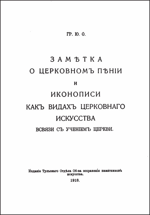 6 Заметка о церковном пении и иконописи как видах церковного искусства в связи с учением церкви. Изд. Тульского отдела Общества сохранения памятников искусства. Сергиев Посад, 1918, 16 с.