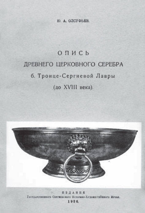 24 Опись древнего церковного серебра б. Троице-Сергиевой лавры (до ХVIII века). Изд. Гос. Сергиевского историко-художественного музея. Сер ги ев, 1926, XXX + 293 с., XIII табл. Тираж 100 экз.