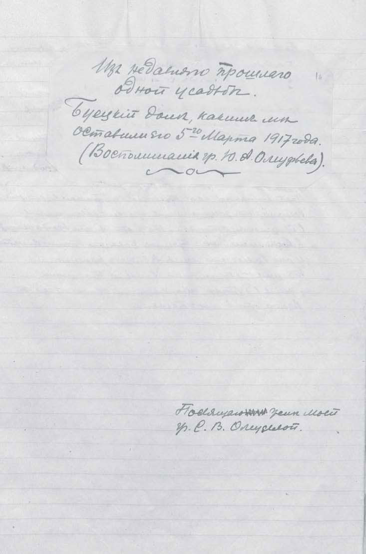 49 Из недавнего прошлого одной усадьбы. Буецкий дом, каким мы оставили его 5-го марта 1917 года. – Печатается в настоящем издании.