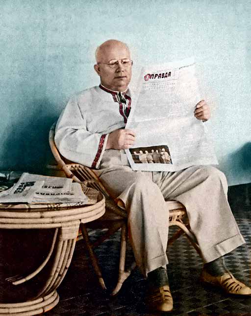 Хрущёв читает газету «Правда». 1956 г.