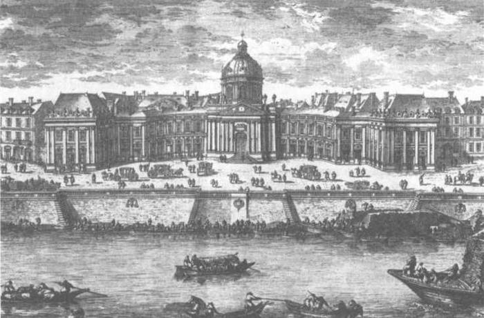 Гравюра Габриэля Переля (1604-1677), изображающая колледж Мазарини (нынешний Институт Франции), где учился Лавуазье.