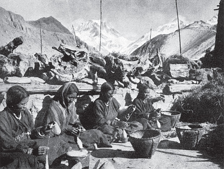 Потом наступила весна, начались работы на полях, показались зеленые стебельки озимых. Здесь, как и в католических странах, пахотную землю освящают. Длинная процессия состоит из монахов, которые несут сто восемь томов тибетской «библии»,[23] а за ними следуют поселяне. Они обходят вокруг деревни, читая молитвы под музыкальный аккомпанемент.