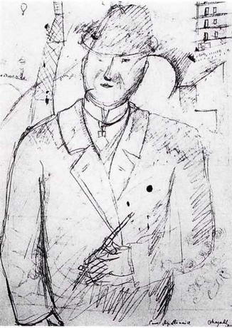 Вот как Шагал вспоминает период "Улья": "В то время как в русских мастерских рыдала оскорбленная натурщица, в итальянских пели и играли на гитаре, а в еврейских не смолкали споры, я сидел один в своей мастерской при свете керосиновой лампы". Одним из самых близких друзей парижского периода был Аполлинер, чей портрет Шагал нарисовал в 1911 году.