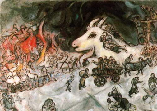 В порыве ненависти, вызывающей в памяти другие исторические эпохи, в Витебске были истреблены евреи. Когда кончилась война, Шагал был твердо убежден, что случившееся не может быть предано забвению.