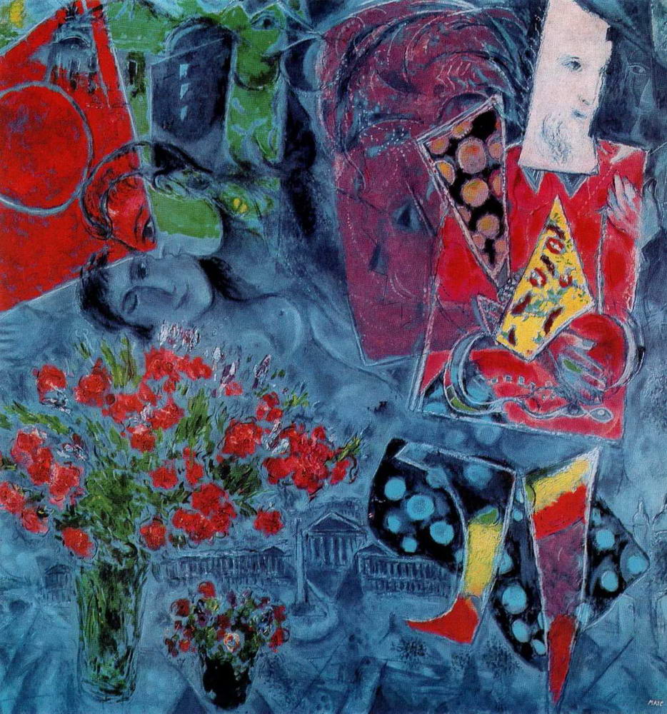 В последние двадцать лет жизни в его живописной манере все чаще встречаются повторы. Однако мазок его остается столь же выразительным, картины столь же поэтичными, а живопись в целом по-прежнему исполнена проникновенного лиризма. Через все творчество Шагала проходит тема жизни как неиссякаемого источника удивления. Рука Всевышнего постоянно проявляет себя в творении, и откровение о его существовании доступно сердцу человека. Художник в глазах Шагала — это мастер, помогающий людям испытывать радостное удивление и глубокие переживания. Многие критики проводили параллель между этой картиной Шагала и "Бурей" Шекспира. Есть и прямая связь между образом волшебника и шекспировским Просперо, говорящим: "Теперь власть чар моих пропала, А силы собственной мне мало". Как и Просперо, художник- волшебник Шагал готовится уйти со сцены, призывая на последний поклон тот иллюзорный мир, что успел полюбиться публике: влюбленных, цветы, руки, образы богов.