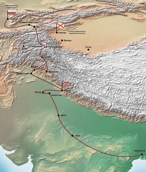 Маршрут поездки А. Е. Снесарева по Британской Индии в 1899 г