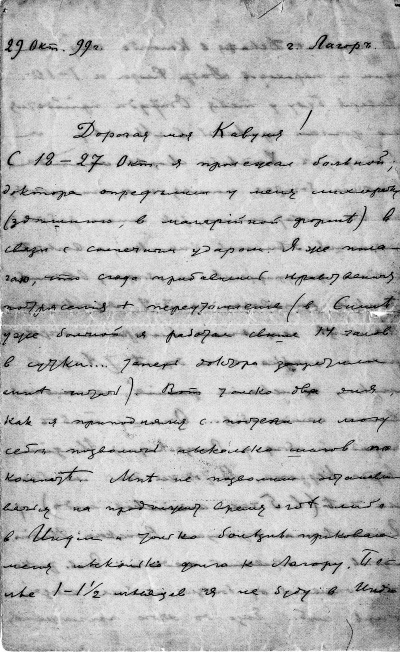 Письмо А. Е. Снесарева к сестре Клавдии. Лахор, 29 октября 1899 г. АСС. Публикуется впервые