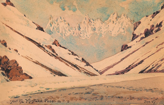 Виды близ перевала Минг-Теке. Акварель капитана Шаттлуорта, исполняющего обязанности британского консула в Кашгаре. 6 июня 1903 г. Частная коллекция. Великобритания. Публикуется впервые