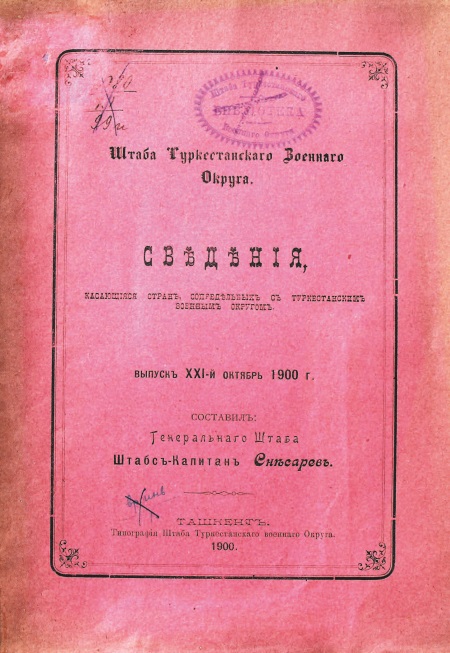 Обложка «Сборника сведений», вышедшего под редакцией А. Е. Снесарева. Частная коллекция. Великобритания