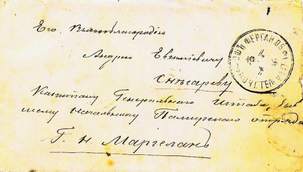 Конверт письма В. Н. Зайцева к А. Е. Снесареву. АСС