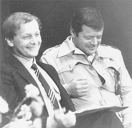 А в 1978 году началась передача «Вокруг смеха». Мишу туда порекомендовал его отец, про которого в Литдраме делали фильм. Миша снимался очень успешно. К тому времени у него уже были хорошие номера. Этому способствовали и частые выступления, а главное, Миша упорно обучался. Учился у всех. И у меня, и у Арканова, и у многих других. Всё время писал для «Литературки». Часто выступал со своим театром «Россия». Они ездили куда-то на север, даже на ледоколе плавали по Северному морскому пути.