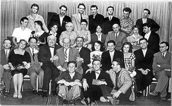 Выпуск школы-студии МХАТ. Групповой снимок со студентами и педагогами. 12 июня 1960 г.