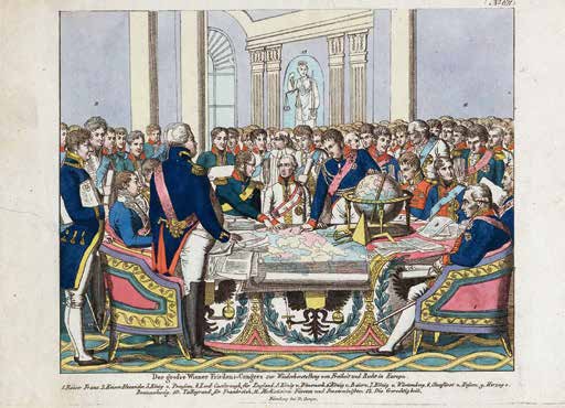 Собравшийся в Вене международный конгресс был призван решить спорные проблемы, обсуждение которых было отложено до окончательной победы над Наполеоном. По сути, речь шла о переделе границ и закреплении новой расстановки сил в Европе. Важность и сложность стоявших на повестке дня вопросов обусловили продолжительность и представительность мероприятия. Вместо планировавшихся шести недель конгресс заседал три четверти года (с сентября 1814 г. по май 1815 г.). На нем присутствовали два императора, четыре короля и более двухсот представителей правящих династий мелких европейских государств. Официальные заседания чередовались с балами, концертами и другими празднествами, что позволило современникам назвать этот конгресс танцующим. Сложившаяся обстановка способствовала интеллектуальным беседам и любовным интригам: «сущий прельститель» Александр I, несмотря на присутствие супруги Елизаветы Алексеевны, завоевал сердца сразу нескольких знатных дам; великая княгиня Екатерина Павловна, овдовевшая в 1812 г., покорила принца Вильгельма Вюртембергского, который вскоре стал ее вторым мужем.