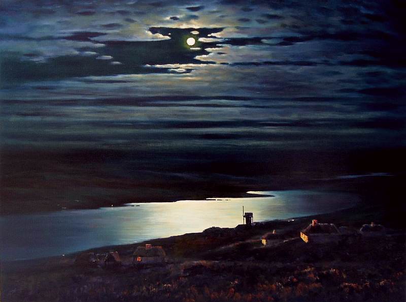 Теплый цвет земли оттеняет холодное, изумрудное отображение лунного света, который лежит на поверхности зеленоватой реки, освещая своим фосфоресцирующим светом Вселенную. Композиция настолько уравновешенна, что плавность цвета завораживает человека. В картине «Лунная ночь на Днепре» космические и человеческие начала не тождественны. Человеческое слишком мало рядом с мировым порядком. И, хотя одно с друг им неразрывно связано, но ощущение необъятности мира, мистической таинственности ее светил, глубина света — все это подавляет человека и следы его жизни на земле. «Лунную ночь на Днепре» часто называют не произведением искусства, а своего рода колдовством, поражающим ум и воображение. Восхищение природой, возведенное художником до космических высот, погружает зрителя в раздумья о прекрасном и вечном.