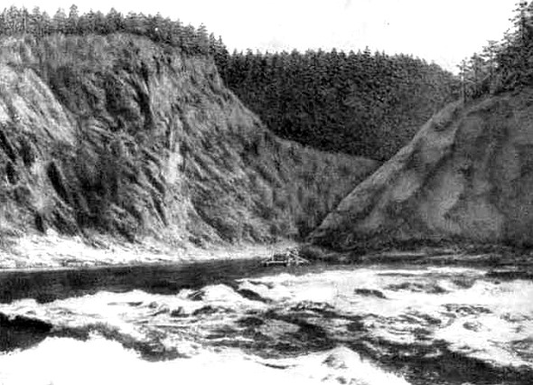 Река делает резкий заворот, и вся масса воды ударяет в крутой берег. Такие места очень опасны для сплава